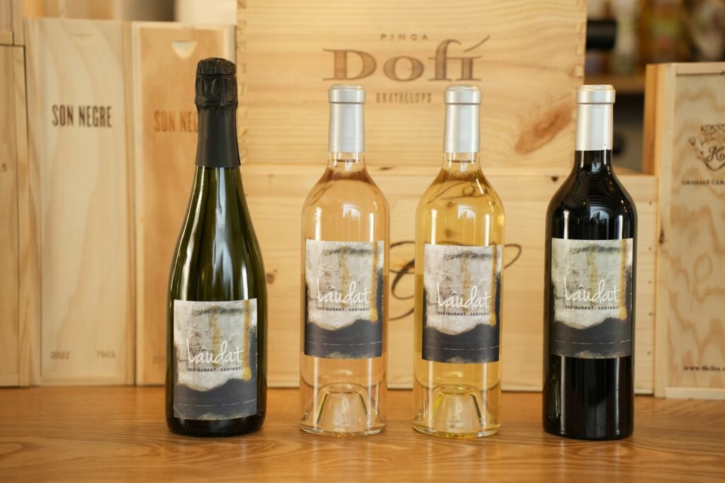 En Restaurant Laudat puedes llevarte tu vino a casa. En el restaurante tenemos más de 100 referencias: mallorquín, nacional e internacional. Además, hacemos nuestros propios vinos donde decidimos el tipo de uva, la vinificación, botellas y etiquetado